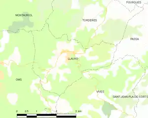 Llauro is located in the canton of Les Aspres and in the arrondissement of Perpignan.