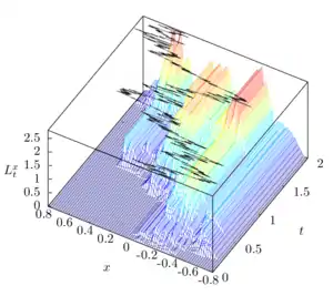 In the mathematical theory of stochastic processes, local time is a stochastic process associated with semimartingale processes such as Brownian motion, that characterizes the amount of time a particle has spent at a given level. Local time appears in various stochastic integration formulas, such as Tanaka's formula, if the integrand is not sufficiently smooth. It is also studied in statistical mechanics in the context of random fields.