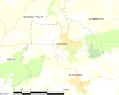 The église Saint-Ronan was built in the fifteenth century, building taking place between 1420 and 1424 in the reign of Jean V and finishing in 1477 in the reign of François II, the father of Anne de Bretagne. The church is rectangular in shape with a nave of six bays with aisles. At the southern end of the nave, two large arcades lead to the Chapelle du Pénity where the tomb of Saint Ronan is located. Building of the Chapelle du Pénity was started in 1485 and finished in around 1515. Inside the Saint-Ronan church there is the Rosary altarpiece, the work of the Landerneau painter and sculptor Maurice Le Roux and dating to 1668. The 1707 pulpit is the work of the carpenter Louis Bariou and the sculptor Guillaume Le Poupon, and is decorated with médaillons depicting scenes from the life of Saint Ronan. The baptismal fonts are carved from granite and date to the fifteenth century and the church has organs installed by Thomas Dallam in 1672. The great window in the church's chevet dedicts 17 scenes from the passion and the window's final panel carries the arms of the Névet family. The tomb of Saint Ronan is carved from kersantite and dates to the fifteenth century. Other statuary in the church is a sixteenth-century "Déploration du Christ" in polychromed kersantite, a statue of Saint Roch in polychromed granite dating to 1509, a statue of Saint Michael in granite dating to the end of the fifteenth century, and an alabaster statue of Notre-Dame de Délivrance dating to the fifteenth century. The church also holds statues of Saint Ronan, Saint Corentin of Quimper, Saint Yves/Ivo of Kermartin, Saint Alar/Saint Eligius, Saint Apollonia, Sainte-Marguerite, Saint Maurice abbé, Saint Anthony, Saint Christopher, Saint Eutrope, Saint Fiacre, Mary Magdalene, Sainte Barbe, the Virgin Mary and John the Evangelist, Sainte Anne, Saint Louis and a pietà.[2]
