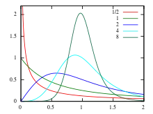 Probability density function ![]() values of as shown in legend | |||