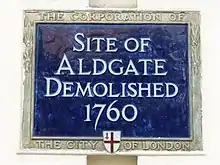 | Aldgate Square | 51°30′49.2″N 0°04′37.1″W | ![]() London Roman Wall – Museum of London Walking Tour Plaque 5 |