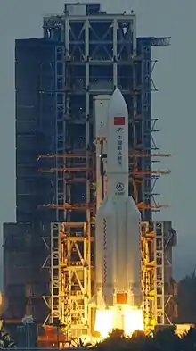 Long March 5 (LM-5; Chinese: 长征五号; pinyin: Chángzhēng wǔ hào), or Changzheng 5 (CZ-5), and also by its nickname "Pang-Wu" (胖五, "Fat-Five"),[5] is a Chinese heavy-lift launch vehicle developed by the China Academy of Launch Vehicle Technology (CALT). It is the first Chinese launch vehicle designed to use exclusively non-hypergolic liquid propellants.[6] It is the fifth iteration of the Long March rocket family.