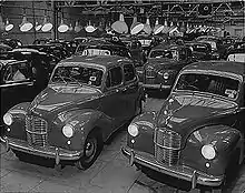 By 1908, 1,000 workers were at a factory, which covered 4 acres (1.6 ha); a night shift was introduced to help create adequate supply to meet the rising demand for products.[7] By September 1912, workshops covered more than 8 acres, output was running at 1,000 cars a year and employee numbers were 1,800. Austin built their own bodies and their coachbuilding department was one of the largest in the country. They built their own artillery wood wheels and made the hubs for wire-spoked and pressed-steel wheels.[8] In February 1914, the company was floated as a public company and £250,000 of new preference shares were issued to the public and listed on the stock exchanges.[12]