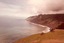 The Lost Coast is a mostly natural and undeveloped area of the California North Coast in Humboldt and Mendocino Counties, which includes the King Range. It was named the "Lost Coast" after the area experienced depopulation in the 1930s.[1] In addition, the steepness and related geotechnical challenges of the coastal mountains made this stretch of coastline too costly for state highway or county road builders to establish routes through the area, leaving it the most undeveloped and remote portion of the California coast.[2] Without any major highways, communities in the Lost Coast region such as Petrolia, Shelter Cove, and Whitethorn are somewhat isolated from the rest of California.