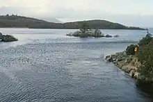 Lough Conn (Irish: Loch Con, meaning 'lake of the hound')[2][3] is a lake in County Mayo, Ireland. With an area of about 48 square kilometres (19 sq mi), it is Ireland's seventh largest lake.[1] With its immediate neighbour to the south, Lough Cullin, it is connected to the Atlantic Ocean by the River Moy. Lough Conn is noted for its trout and salmon fishing.[4] The ruins of a priory exist at Errew Abbey.
