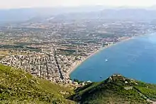 Loutraki (Greek: Λουτράκι) is a seaside resort on the Gulf of Corinth, in Corinthia, Greece. It is located 81 kilometres (50 miles) west of Athens and 8 kilometres (5 miles) northeast of Corinth. Loutraki is the seat of the municipality Loutraki-Perachora-Agioi Theodoroi. The town is known for its vast natural springs and its therapeutic spas. There are many tourists who visit Loutraki every year (especially in summer) because of its crystal clear sea. The Casino of Loutraki has thousands of visitors every day. The population in 2011 was 11,654 people.