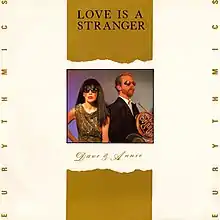 "Love Is a Stranger" is a song by the British pop duo Eurythmics. Originally released in late 1982, the single was commercially unsuccessful, but it was re-released in 1983, reaching the UK top 10.[1] The single was re-released again in 1991, to promote Eurythmics' Greatest Hits album.