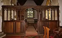 An opening high in the wall west of the south arcade suggests that the nave once had a west gallery. This has been removed, as has the rood and rood loft, but the 15th-century wooden screen to the chancel survives.