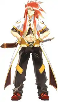 The main protagonist of the game, Luke is 17 and is the only son of a noble family in the kingdom of Kimlasca-Lanvaldear. After being kidnapped at age ten, Luke lost all of his childhood memories, and after being returned home was confined to the safety of the fon Fabre manor. His isolation leads him to become a rather immature, selfish individual with next to no knowledge of the world.[12] His only hobby is swordsmanship. During a training session with Van Grants, Luke tries to protect his teacher from the assassin Tear Grants and the two are transported to the outer world.[13] On his way back, Luke meets Colonel Jade Curtiss from the Malkuth forces who requests his help to stop an impending war using his status as a noble.[14] When reuniting with Van, he learns he possesses the ability to create a "hyperresonance" on his own, an extremely powerful ability when two fonists of the same type use their abilities in tandem. Luke is convinced by his teacher to use his power to become a hero and stop war so that he would not be used as a weapon.[15] Van manipulates him into using the hyperresonance to save the town of Akzeriuth from miasma and become a hero.[16] However, this results in the town's destruction and Luke losing everyone's trust.[17]