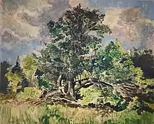 Winter's experiences living in the rural Midwest as a child left lasting impressions on his artistic direction, as many of his works themes included horizontal landscapes and horses. His time spent living there helped cultivate his love of wild nature. Throughout his life, Winter would periodically venture back to Northern New Mexico where he had built a studio in the desert, outside Taos, in 1939. He would travel along the Santa Fe Trail and the Sangre de Cristo Mountains where he found great inspiration from the flora and fauna of the region. Winter often did independent works based on his experiences in the countryside; capturing the saturated and diverse colors from different times of day, the textures of cacti, and the depth of the landscape, it was here that Winter felt he was most at home.[8]