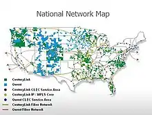 In 2005, CenturyTel began a wireless voice and data service, and bought a number of fiber networks in the central United States, from KMC Telecom Holdings, Inc.[25]