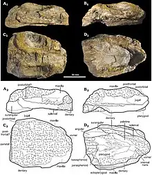 | Holotype partial skull and explanatory drawings | |
