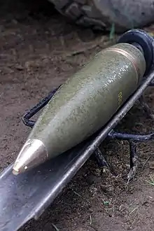 The M107 is a 155 mm high explosive projectile used by many countries. It is a bursting round with fragmentation and blast effects. It used to be the standard 155 mm high explosive projectile for howitzers of the US Army and US Marine Corps, but is being superseded in the US military by the M795.