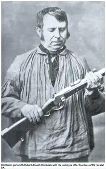 The M1870 Belgian Comblain was a falling-block rifle invented by Hubert-Joseph Comblain of Liège, Belgium and produced in several variants known as the Belgian, Brazilian or Chilean Comblain.