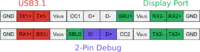 - A mapping from the standard interface pins to the debug pins is specified.