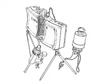 The MON-50 (Russian: МОН-50) is a Soviet rectangular, slightly concave, plastic bodied, directional type of anti-personnel mine designed to wound or kill by explosive fragmentation. It first entered service in 1965 and is a copy of the American M18 Claymore with a few differences.[1][2] Its name is derived from Russian мина осколочная направленного (mina oskolochnaya napravlennogo), "directional fragmentation mine".