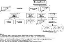This cruelty of the distinguished members of the "Maras" or "Mareros" resulted in some being recruited by the Sinaloa Cartel battling against Los Zetas in the Mexican Drug War.[22][23][24] Their wide-ranging activities have drawn the attention of the FBI and U.S. Immigration and Customs Enforcement, who have initiated wide-scale raids against known and suspected gang members, arresting hundreds across the United States.[25] In an interview with Bill Ritter in late 2017, Nassau County, New York District Attorney Madeline Singas, referring to crimes committed by MS-13 gang members, stated: "The crimes that we're talking about are brutal. Their weapon of choice is a machete. We end up seeing people with injuries that I've never seen before. You know, limbs hacked off. And that's what the bodies look like that we're recovering. So they're brutal. They're ruthless, and we're gonna be relentless in our attacks against them."[26] The choice of a machete is in contrast to other gangs, which prefer to use guns.[27] Officials state the gang has ambitions to become a 'national brand' with an organization to match the Mafia or Mexican drug cartels and estimate its membership has grown by several thousand in the last decade, with a presence in forty states.[28]