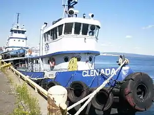 Glenada is an ex-Canadian navy tugboat that was launched in 1943. Glenada was built by Russel Brothers Limited in Owen Sound, Ontario. It is one of twenty 1943 Glen-class tugs, eleven of which were built by the Russel Brothers Company. When it served for the Royal Canadian Navy the official number for this boat was (W30) 177886 and the Canadian Navy number was 534. The Glen-class tugs were made in two designs (designated "A" and "B"); Glenada is an "A" design, with a longer main deck house, extending aft over the engine room, and uniform height bulwarks from forward to aft. A lifeboat is mounted on the bridgedeck aft of the stack. Glenada was originally powered by one Vivian 320 hp (240 kW) 8-cylinder diesel (400 hp (300 kW) with supercharger).