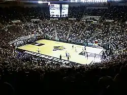 Originally named Purdue Arena, it was renamed in 1972 to honor Purdue alumnus and long time athletic director Guy "Red" Mackey. On December 12, 1997, the floor was renamed Keady Court in honor of longtime men's coach Gene Keady. The circular arena, similar to several built in the 1960s, seats 14,804, and is considered by many as one of the loudest arenas in the nation due to its domed aluminum roof.[7]