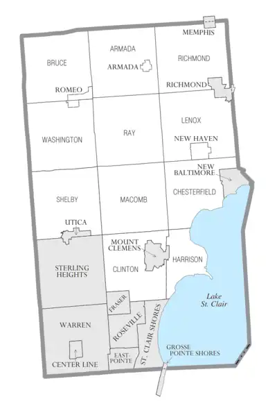 Lake St. Clair borders the county on the east.