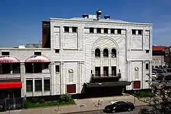 The building was commissioned by Dee Robinson and designed by Frederick J. Klein; it was added to the National Register of Historic Places on November 21, 1980. From 1996 to 2002, the Theatre was revived under the management of Jay Goldberg Events & Entertainment. Over 200 concerts took place during this period including live performances by George Winston, Ray Charles, The Smashing Pumpkins, Creed, REO Speedwagon, Fiona Apple, Todd Rundgren, moe., Govt' Mule, and Mudvayne. The building is located across the street from the Pere Marquette Hotel, also on the National Register.[3] The theatre features an Italian Renaissance exterior and classical plasterwork on the interior walls and domed lobby ceilings. The lobby's terra-cotta plasterwork frames a triple-arched window above the marquee.[4] The theatre closed in 2003.[5]