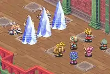 The player can increase the power of attacks by borrowing power from elemental spirits in a process called Seirei Combo (精霊コンボ, spirit combo). To use a spirit combo, the player must summon an elemental spirit, and use magic of the same element in the following turns to release vast amounts of damage. Attack power is doubled per spirit present, meaning 2 spirits would create 4 times as much damage, and 3 spirits would create 8 times as much. The maximum combo (7 spirits) yields 128 times as much damage. The power of basic magic can surpass that of advanced magic if the player uses this combo. However, certain special rules apply to its use. For instance, the enemy can summon spirits of a stronger element to eliminate the combo's effectiveness (having one fire elemental spirit will eliminate the effect of one wind elemental spirit), and spirits can be extracted from the field using certain spells. The combo also applies for bombs which contain the magic power of an element. The maximum number of spirits that can be summoned is 7 (regardless of how many spirits were present at the start of the battle), and spirits must be re-summoned per combo use.