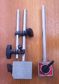 A magnetic switchable device (often called a magnetic base) is a magnetic fixture that uses one or more permanent magnets in a configuration that allows the external field to be turned on or off. They are used in many applications including optics, metalworking, lifting, and robotics, to attach items to metal surfaces in a secure but temporary way.[1][2]
