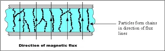 When a magnetic field is applied, however, the microscopic particles (usually in the 0.1–10 µm range) align themselves along the lines of magnetic flux,[1] see below.