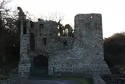 Mahee Castle, also known as Nendrum Castle, is a small ruined tower house near Nendrum Monastery on Mahee Island in Strangford Lough, County Down, Northern Ireland.[1] It was built in 1570 by Captain Thomas Browne.[2][3] It was abandoned by the early 17th century, and fell into disrepair.[4] In 1923, H.C. Lawlor and the Belfast Natural History and Philosophical Society partly renovated the tower house to avoid further erosion and built a buttress wall to support the northwest corner of the tower.