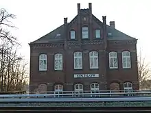 The station building is located east of the tracks. It is essentially a new building, which was created in 1961 and opened shortly before the building of the Berlin Wall. The S-Bahn platform is in an elevated position and is an island platform with two tracks. Mahlow serves as a crossing station, where the trains on line S2 meet on the otherwise single-track line between Lichtenrade and Blankenfelde. The disused long-distance tracks run between the platform and station building and north of the station building there is a track for loading freight to and from road transport. The Royal Prussian Military Railway had its station building on the western side of the railway tracks. It is now used as a residence and is a heritage-listed building.[7]