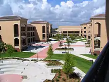 The current school, which now faces International Speedway Boulevard, was built by 2006.[7] As air conditioning was no longer a concern, the design went back to being centralized, with the five main buildings centered around a large courtyard. The improvement was aided by a $6 million gift from notable alumnus and professional basketball player Vince Carter.