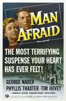 Man Afraid is a 1957 American film noir directed by Harry Keller and starring George Nader, Phyllis Thaxter and Tim Hovey.