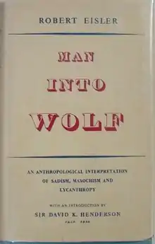 Man Into Wolf; An Anthropological Interpretation of Sadism, Masochism and Lycanthropy is a book by Robert Eisler, published in 1948. The text is based upon his readings in archeology and anthropology; anything not covered by these disciplines is then dealt with using Jungian methods of dream analysis and the theory of archetypes. For instance, his remarks concerning the nature of life in prehistory are largely derived from his interpretations of the dreams of psychotherapy patients.[1]