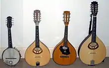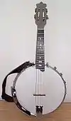 The mandolin-banjo is a hybrid instrument, combining a banjo body with the neck and tuning of a mandolin. It is a soprano banjo.[1] It has been independently invented in more than one country, variously being called mandolin-banjo, banjo-mandolin, banjolin and banjourine in English-speaking countries,[2] banjoline and bandoline in France,[3] and the Cümbüş in Turkey.[4]