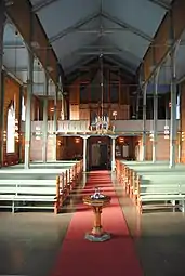 Again in 1822, the church caught fire by a lightning strike. This damaged the tower and part of the masonry structure, but the damage was not severe and it was quickly repaired. In 1885, the church was sold back to the municipality from private ownership. Immediately afterwards, the parish decided that the church was too small, and it needed to be enlarged. After some planning, it was determined that enlarging the old church would be more expensive than tearing it down and building a new wooden church. In 1891, the old church was torn down and replaced by a new wooden one. The architect Hans Heinrich Jess from Bergen was commissioned to make the architectural drawings and Karl Askeland was hired to lead the construction work. The new church was consecrated on 27 October 1891. In 1950-1957, the northern sacristy was replaced with an addition that included a church hall with a kitchen and hallway.[3][4]
