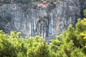 Central and southern parts of western Anatolia entered history with the still obscure Luwian kingdom of Arzawa, probably offshoots, as well as neighbors and, after around 1320 BCE, vassals of the Hittite Empire. Cybele monument located at Akpınar on the northern flank of Mount Sipylus, at a distance of 7 km (4 mi) from Manisa on the road to Turgutlu is, along with the King of Mira rock relief at Mount Nif near Kemalpaşa and a number of cuneiform tablet records are among the principal evidence of extension of Hittite control and influence in western Anatolia based on local principalities. Cybele monument by itself represents a step of innovation in Hittite art where full-faced figures in high relief are rare. The first millennium BC saw the emergence in the region of "Phrygians" and "Maeonians", the accounts concerning which are still blended with myths,[lower-alpha 1] and finally of Lydians. Such semi-legendary figures like the local ruler Tantalus, his son Pelops, his daughter Niobe, the departure of a sizable part of the region's population from their shores to found, according to one account, the future Etruscan civilization in present-day Italy, are all centered around Mount Sipylus, where the first urban settlement was probably located, and date from the period prior to the emergence of the Lydian Mermnad dynasty. It has also been suggested that the mountain could be the geographical setting for Baucis and Philemon tale as well, while most sources still usually associate it with Tyana (Hittite Tuwanuwa) in modern-day Kemerhisar near Niğde.[6]