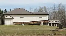 Manly Hall is located on the north side of the Yellowhead Highway, west of the Highway 43 and Yellowhead Highway interchange