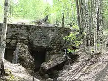 During October 1919 Finnish Chief of Staff Major General Oscar Enckell sited the line, mostly following the original course that von Brandenstein had presented.[7] Major J. Gros-Coissy, a member of the French military commission, designed the fortifications together with Finnish Lt Col Johan Fabritius.[8] During the first building period, Fabritius suggested moving the defensive line further to the south-east. The general staff discussed the issue, but Enckell's earlier plans were followed. Furthermore, insufficient funds resulted in a disagreement between the officers and Enckell resigned in 1924. Construction work was interrupted for a long period.[5]