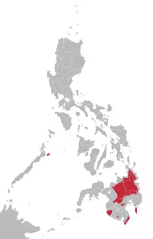 ![]() Geographic extent of Manobo languages based on Ethnologue maps | |
