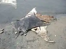 Both commercial and artisanal fisheries have targeted mantas for their meat and products. They are typically caught with nets, trawls, and harpoons.[16] Mantas were once captured by fisheries in California and Australia for their liver oil and skin; the latter made into abrasives.[10] Their flesh is edible and is consumed in some countries, but is unattractive compared to other fish.[46] Demand for their gill rakers, the cartilaginous structures protecting the gills, has recently entered Chinese medicine.[47] To fill the growing demand in Asia for gill rakers, targeted fisheries have developed in the Philippines, Indonesia, Mozambique, Madagascar, India, Pakistan, Sri Lanka, Brazil, and Tanzania.[46] Each year, thousands of manta rays, primarily M. birostris, are caught and killed purely for their gill rakers. A fisheries study in Sri Lanka and India estimated that over 1000 were being sold in the country's fish markets each year.[48] By comparison, M. birostris populations at most of the key aggregation sites around the world are estimated to have significantly fewer than 1000 individuals.[49] Targeted fisheries for manta rays in the Gulf of California, the west coast of Mexico, India, Sri Lanka, Indonesia, and the Philippines have reduced populations in these areas dramatically.[16]