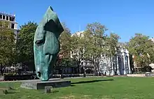 Park Lane was widened as part of the Park Lane Improvement Scheme of the London County Council, and the Marble Arch became stranded on a traffic island. The scheme required an act of Parliament in 1958, and during the passage of the Park Lane Improvement Bill the possibility of providing an underpass instead of a roundabout was dismissed due to excessive cost and the need to demolish buildings on Edgware Road.[12] As part of the scheme, gardens were laid out around the arch on the traffic island.[13] The works took place between 1960 and 1964.[14]