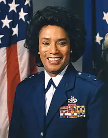 Harris’s career included many "firsts", including being the first female aircraft maintenance officer, one of the first two female air officers commanding at the United States Air Force Academy, and the Air Force’s first female Director of Maintenance.[2] She served as a White House social aide during the Carter administration. Her service medals and decorations include the Bronze Star, the Presidential Unit Citation, and the Vietnam Service Medal. Harris retired as a major general in 1997, the highest ranking female officer in the Air Force and the Nation’s highest ranking African-American woman in the Department of Defense. Upon retirement from the Air Force, she served NASA as the Florida Site Director and Logistics Process Owner for United Space Alliance, the company managing the nation’s shuttle program. Besides her Spelman B.A., she holds a B.S. in Business Management from the University of Maryland University College. In 1999, Harris was awarded an Honorary Doctorate Degree from Spelman College. She was a member of Delta Sigma Theta sorority.
