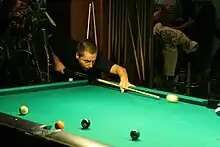 Chamat reached the semi-finals of a world championships for the first time in 2004 at the 2004 WPA World Nine-ball Championship. After the preliminary round, Chamat defeated Souquet, Ramil Gallego (both 9–6), Thorsten Schober (11–8), and Marlon Manalo (11–6).[5] Chamat played Chang Pei-Wei in the semi-final, but lost 11–9.[6] He also reached this stage at the 2008 WPA World Eight-ball Championship, defeating Gabriele Cimmino, Kasper Kristoffersen (both 10–5) and Dimitri Jungo (10–6), before losing in the semi-final to Souquet 10–8.[7][8]