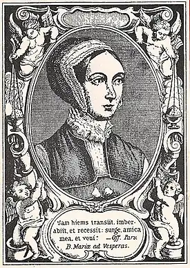 Margaret Clitherow (1556 – 25 March 1586) was an English saint and martyr of the Roman Catholic Church,[2] known as "the Pearl of York". She was pressed to death for refusing to enter a plea to the charge of harbouring Catholic priests. She was canonised in 1970 by Pope Paul VI.