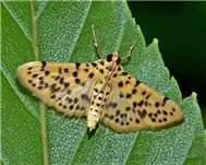 The tribe comprises a number of economically impactful species whose caterpillars feed on agricultural crops. These species include the legume pod borer (Maruca vitrata), the jasmine moth (Palpita vitrealis) on olives, the cucumber moth (Diaphania indica), species of the genus Conogethes such as the yellow peach moth (C. punctiferalis), and the coconut leafroller (Omiodes blackburni). Furthermore, the box tree moth (Cydalima perspectalis) is included in this tribe.[3]