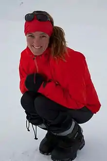 Maria Leijerstam is a British polar adventurer. In 2013 she became the first person to cycle to the South Pole from the edge of the continent.[1][2] Leijerstam started her expedition on the Ross Ice Shelf at the edge of the Antarctic continent, and cycled for 10 to 17 hours each day with no rest days, and the total distance cycled was 638 km (396 mi). Leijerstam's cycle was a three wheeled design, and she reached the pole faster than any previous skiing expedition.