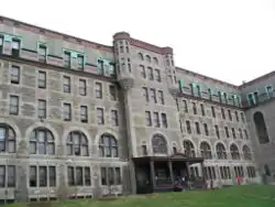 For 30 years, Marianopolis was located near McGill University at 3647 rue Peel, where it had moved in 1945 from a previous building that was destroyed by fire. In 1975, the college relocated to a larger campus on the site of the former Sulpician school Séminaire de Philosophie, at 3880 Côte des Neiges. In 2007, Marianopolis returned to its original campus in the prestigious historic building at 4873 Westmount Av., designed by J.O. Marchand, a prominent Quebec architect of his time and creator of such architecturally significant buildings as the old Municipal Courthouse and the Peace Tower of the Parliament of Canada. The building was built first for the Institut pédagogique, a superior normal school to train female teachers and after as the mother house of the Congregation before returning to academic use. The campus’ facilities were modernized and a double gymnasium was built underground. In 2017, the College undertook the largest renovation project in its history to equip its near-century-old building with modern safety features, heating, ventilation, and air-conditioning, while upgrading teaching, learning and working spaces across campus.[2]
