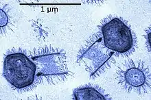 Bacteriophages, often just called phages, are viruses that parasite bacteria and archaea. Marine phages parasite marine bacteria and archaea, such as cyanobacteria.[40] They are a common and diverse group of viruses and are the most abundant biological entity in marine environments, because their hosts, bacteria, are typically the numerically dominant cellular life in the sea. Generally there are about 1 million to 10 million viruses in each mL of seawater, or about ten times more double-stranded DNA viruses than there are cellular organisms,[41][42] although estimates of viral abundance in seawater can vary over a wide range.[43][44] For a long time, tailed phages of the order Caudovirales seemed to dominate marine ecosystems in number and diversity of organisms.[40] However, as a result of more recent research, non-tailed viruses appear to be dominant in multiple depths and oceanic regions, followed by the Caudovirales families of myoviruses, podoviruses, and siphoviruses.[45] Phages belonging to the families Corticoviridae,[46] Inoviridae,[47] Microviridae,[48] and Autolykiviridae[49][50][51][52] are also known to infect diverse marine bacteria.