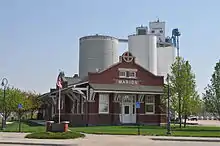 As early as 1875, city leaders of Marion held a meeting to consider a branch railroad from Florence. In 1878, Atchison, Topeka and Santa Fe Railway and parties from Marion County and McPherson County chartered the Marion and McPherson Railway Company.[9] In 1879, a branch line was built from Florence to McPherson, in 1880 it was extended to Lyons, in 1881 it was extended to Ellinwood.[10] The line was leased and operated by the Atchison, Topeka and Santa Fe Railway. The line from Florence to Marion, was abandoned in 1968.[11] In 1992, the line from Marion to McPherson was sold to Central Kansas Railway. In 1993, after heavy flood damage, the line from Marion to McPherson was abandoned. The original branch line connected Florence, Marion, Canada, Hillsboro, Lehigh, Canton, Galva, McPherson, Conway, Windom, Little River, Mitchell, Lyons, Chase, Ellinwood. Later, the Santa Fe depot building was converted into the Marion Library. Most locals still refer to this railroad as the "Santa Fe".