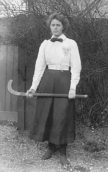 Marjory Phillpotts (as she then was) started playing hockey at Bedford in 1896. At that time the standard hockey stick had a rounded face rather than a flat one and the ball had a covering of tightly wound string.[1] In 1899 she joined Bedford Hockey Club and began her sporting career. She played for the Midlands from 1899 to 1903 and for England from 1900 to 1903. In 1903 she captained the England team against Ireland.[1]